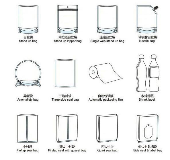 上圖為常見包裝袋袋型,能夠依據(jù)你的需求對(duì)號(hào)入座。